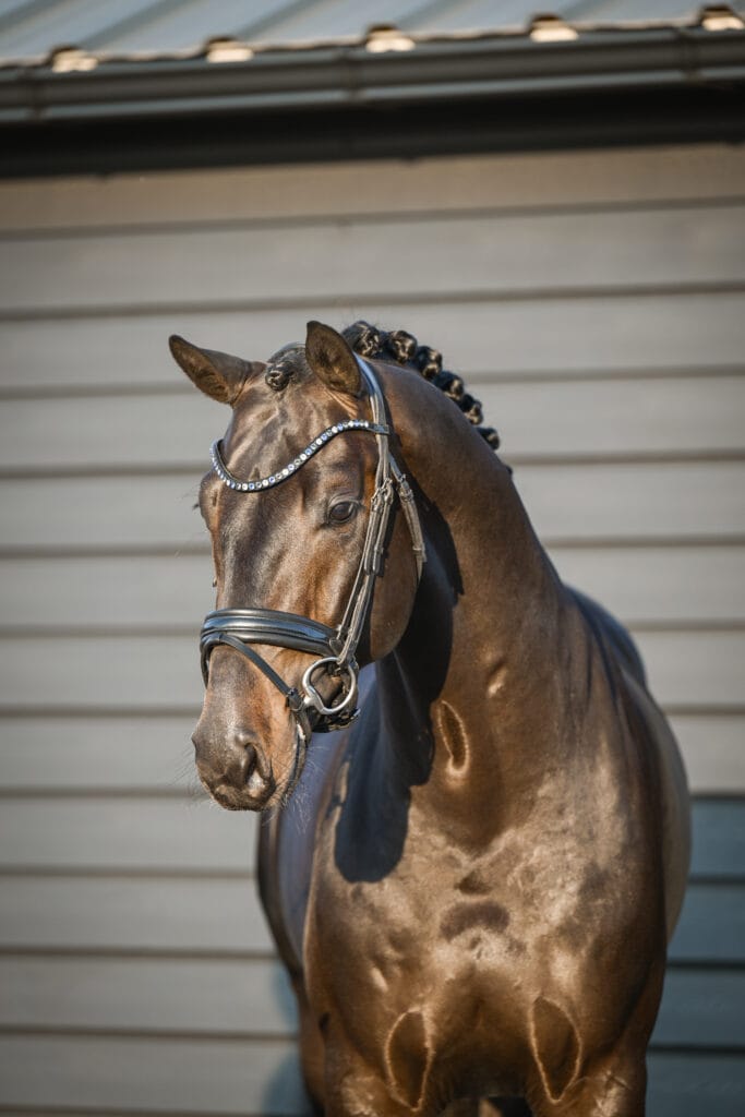 Rayano is een moderne hengst met kracht, uitstraling en souplesse. Zijn Glamourdale x Lord Leatherdale-afstamming geeft talent, balans en veel potentie voor de hogere dressuur.